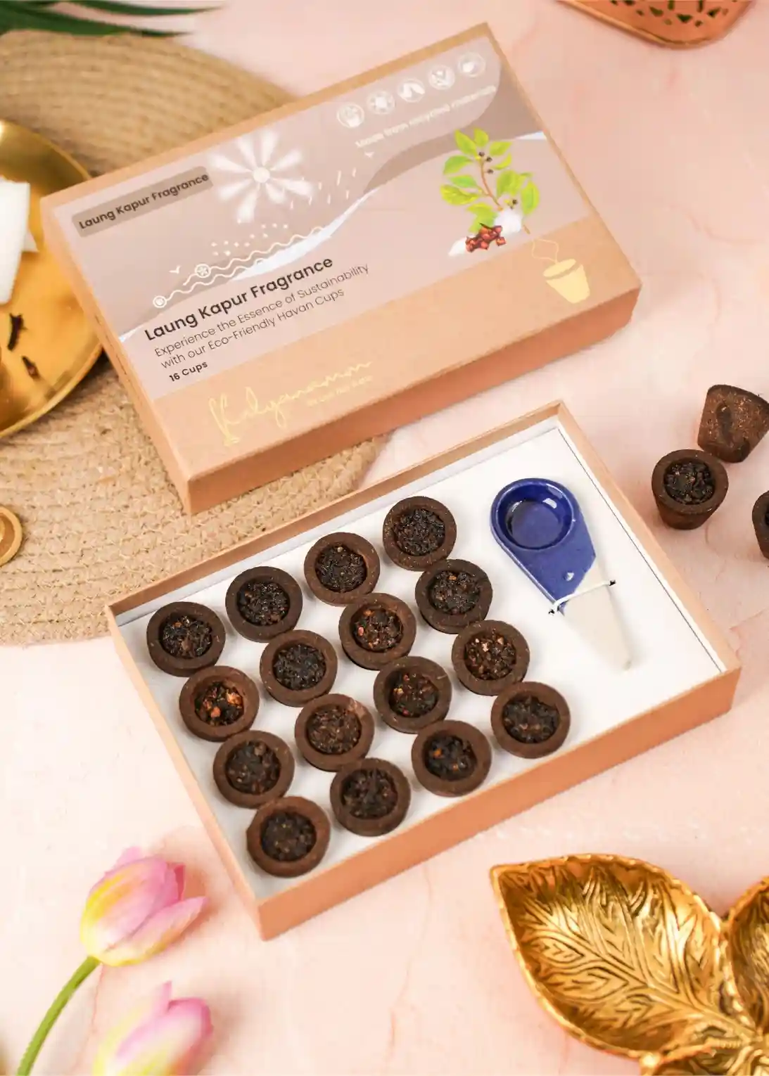 Both havan cups are made using 100% cow dung, maintaining authenticity and alignment with traditional practices associated with sacred rituals.